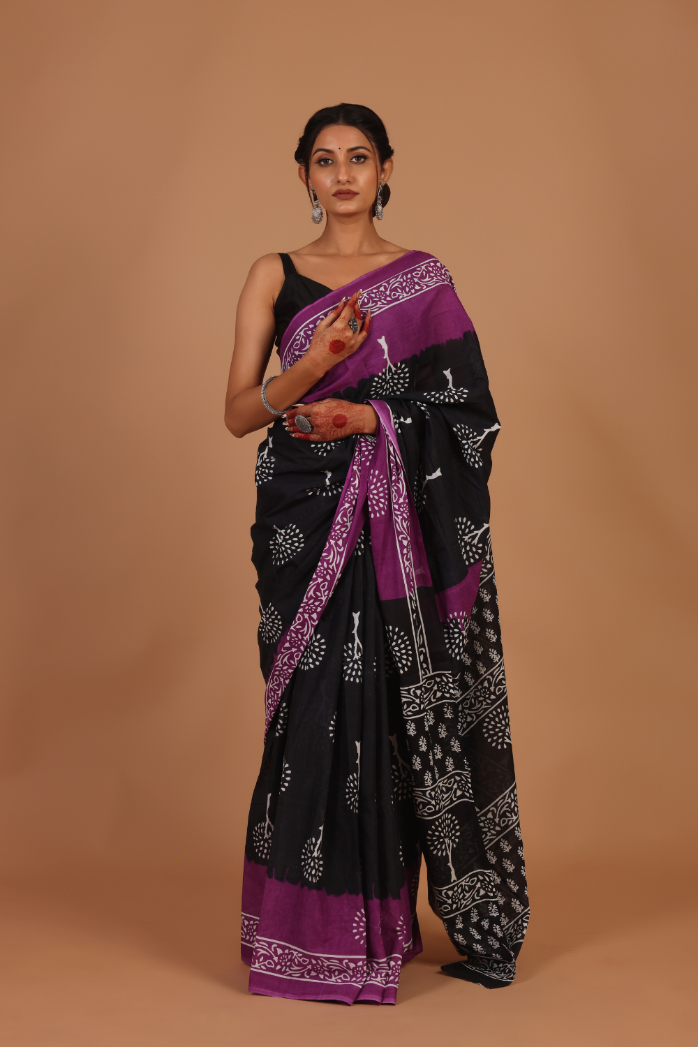 Elegant Black Saree with Rich Purple Border – A Classic Fusion of Timeless Sophistication