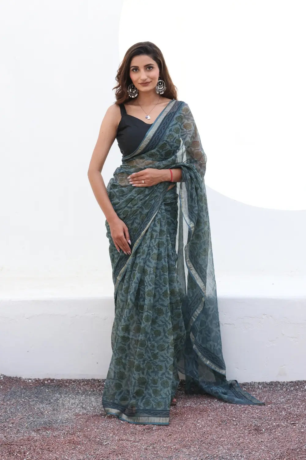 Vibrant Emerald Green Kota Doria Saree – Light, Airy & Effortlessly Elegant
