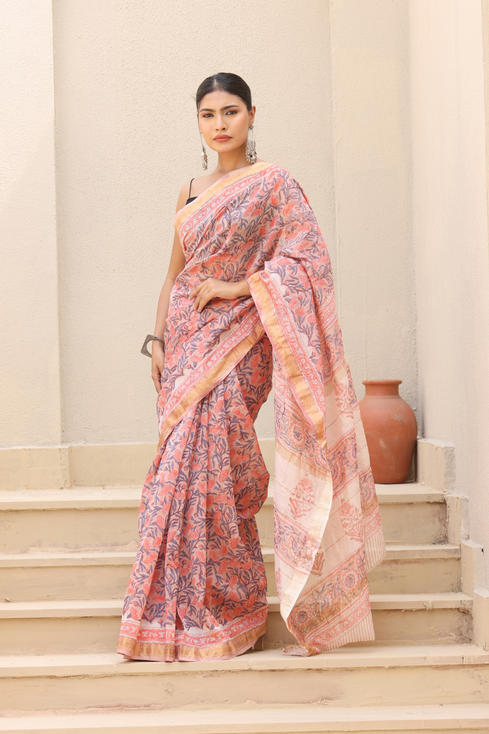 Graceful Pink Maheshwari Silk Saree – Elegant & Lightweight Drape
