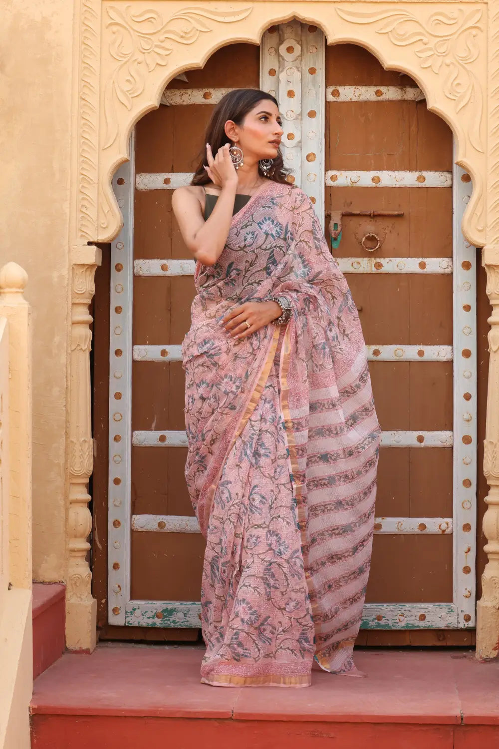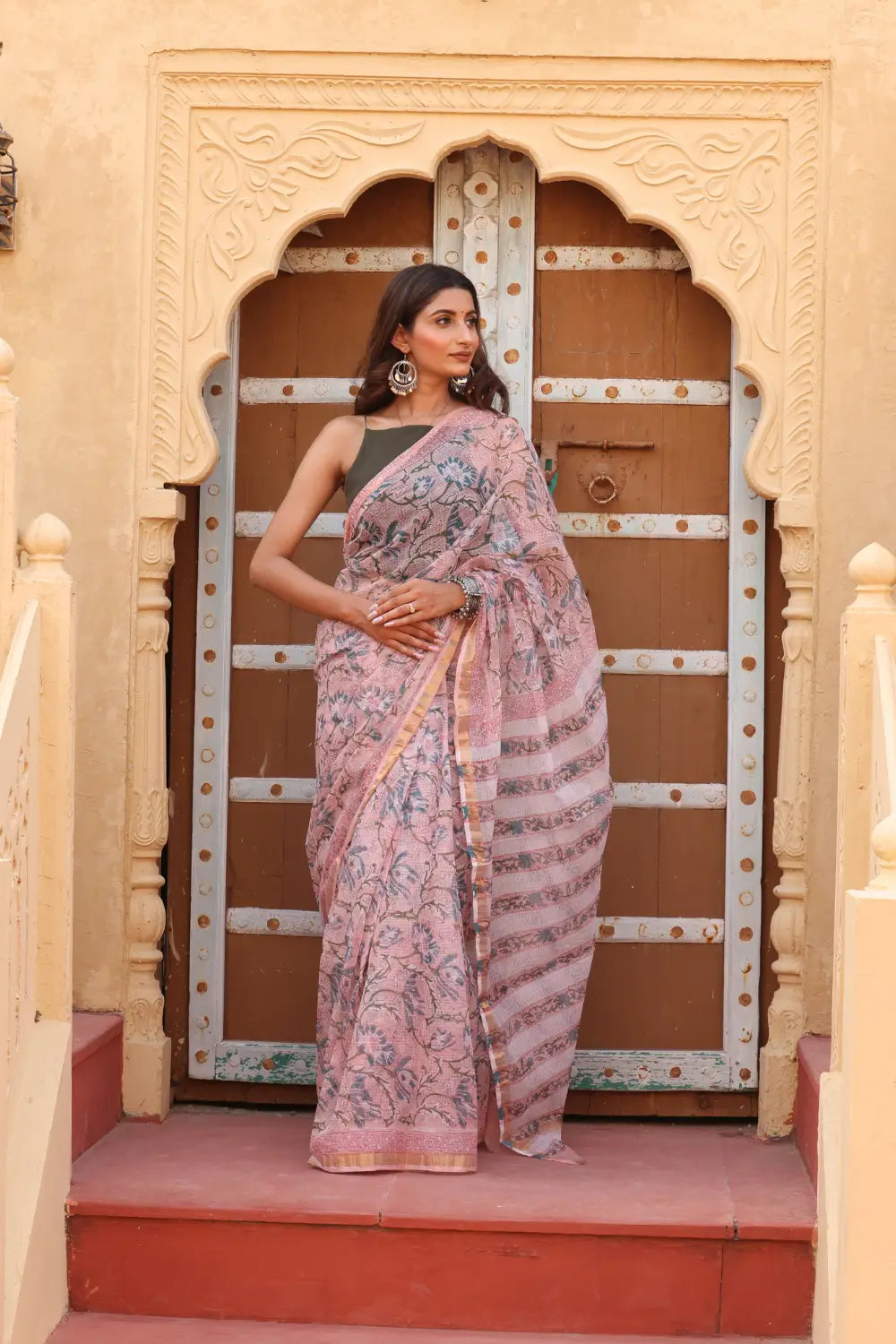 Soft Pink Kota Doria Saree – Lightweight, Elegant & Traditional Grace