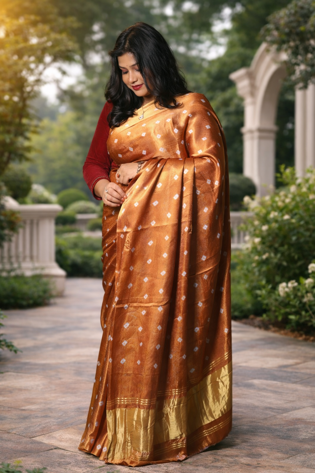 • Color: A warm, glowing Rust-Orange (Amber) that radiates elegance in both daylight and evening festivities.